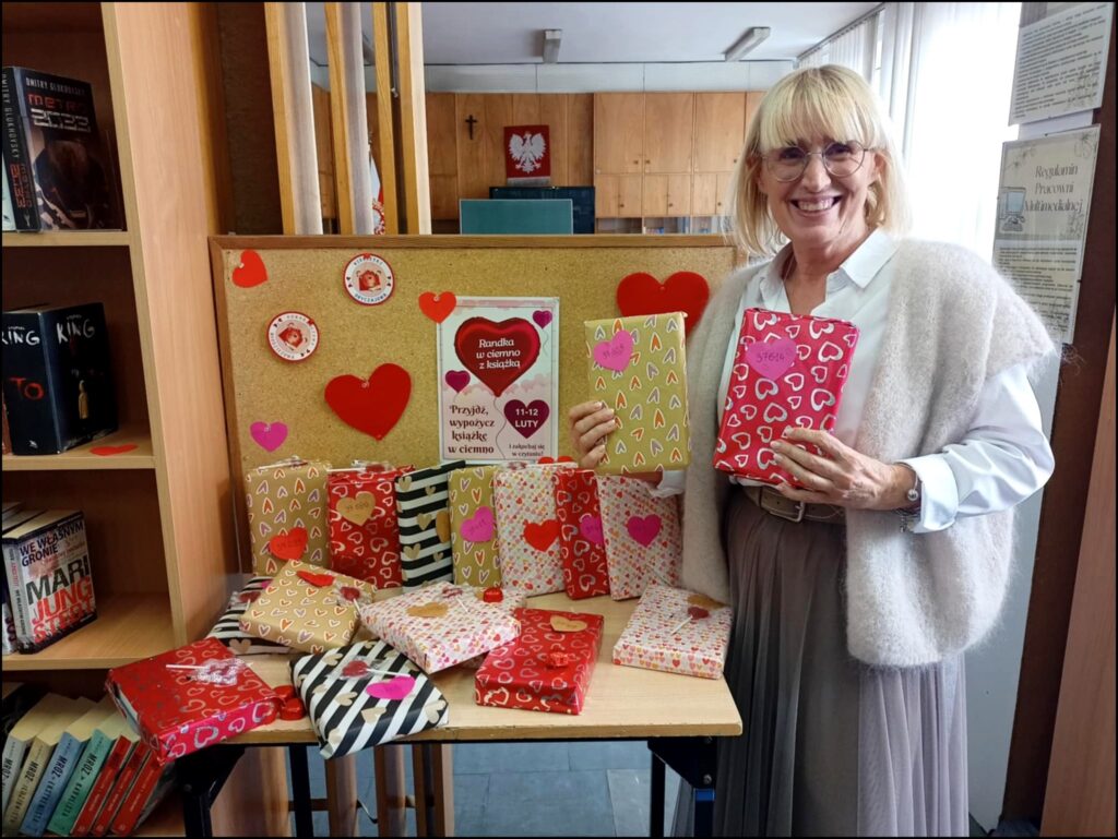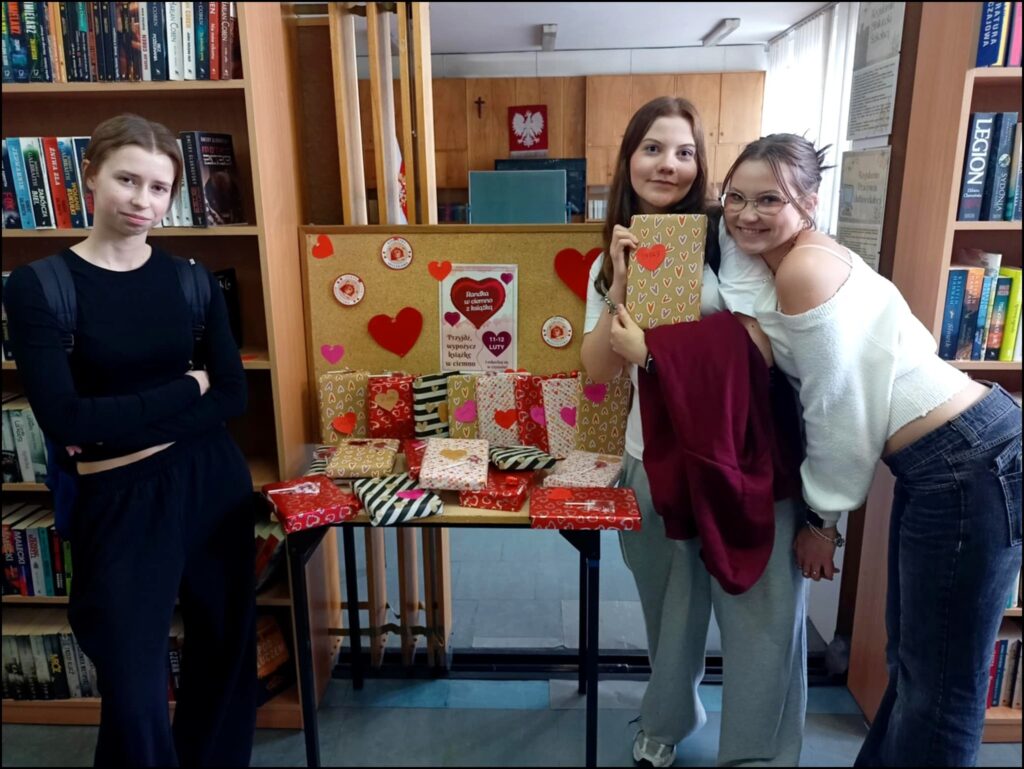 W dniach 11–12 lutego w bibliotece szkolnej zrobiło się walentynkowo! Wszystko za sprawą akcji czytelniczej „Randka w ciemno z książką”, podczas której nasi czytelnicy wybierali lektury zupełnie w ciemno – bez znajomości tytułu, autora czy okładki.