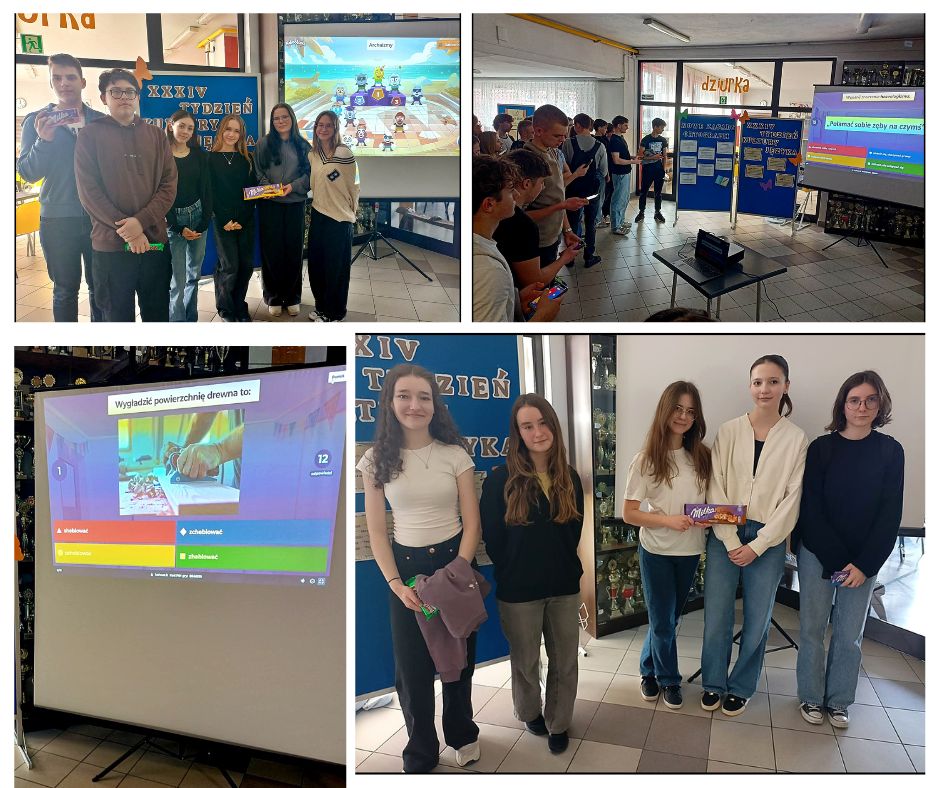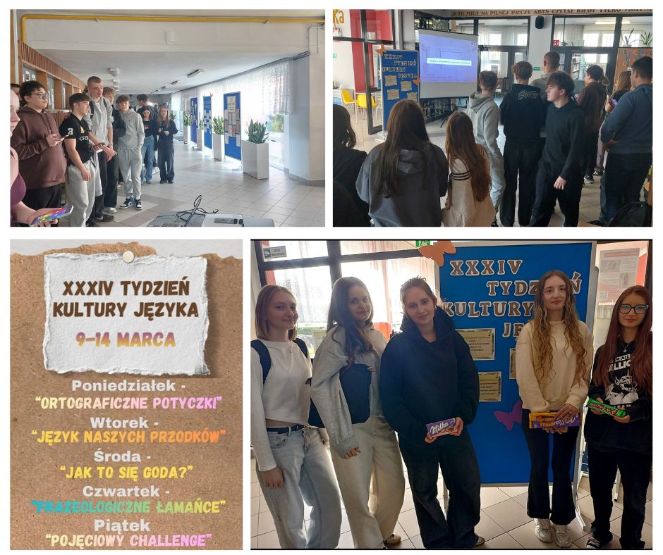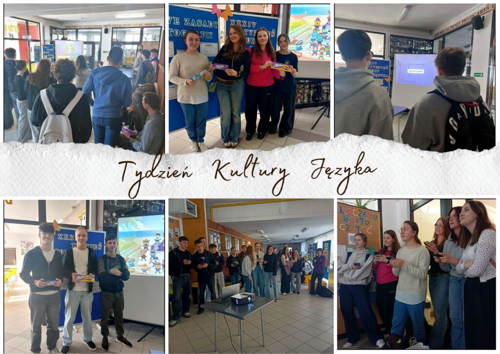 W dniach 9-13 marca w ramach Tygodnia Kultury Języka przeprowadzono cykl quizów w formie Kahoot. Wydarzenia odbywały się codziennie na długiej przerwie przy bibliotece i cieszyły się dużym zainteresowaniem uczniów. Przygotowano różnorodne zagadnienia językowe, obejmujące m.in. ortografię, archaizmy, gwarę, aforyzmy oraz terminologię językową. Uczniowie mieli możliwość sprawdzenia swojej wiedzy, a także poszerzenia znajomości języka polskiego w atrakcyjnej formie. W trakcie całego tygodnia wyłoniono zwycięzców poszczególnych konkurencji, którym przyznano nagrody. Oto oni: