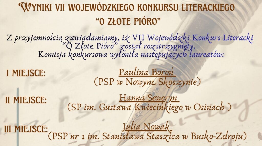 VII WOJEWÓDZKI KONKURS LITERACKI „O ZŁOTE PIÓRO” – wyniki